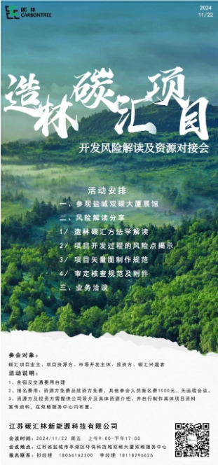 隨著CCER正式啟動,新的管理辦法對減排項目合規性要求有較大提升,促使很多項目業主和地方各級政府部門開始冷靜思考方法學下合規減排項目如何實施的問題。近期國內各地項目業主和項目資源方都在向碳匯林公司咨詢碳匯項目開發合作事宜,但是由于大部分項目業主和項目資源對減排項目的內在機理缺乏基礎認知,為提高對CCER項目的認識,促進減排項目規范運行和規范監測,本網于11月22日全天在江蘇鹽城雙碳服務中心舉辦造林碳匯項目開發風險解讀及資源對接會。